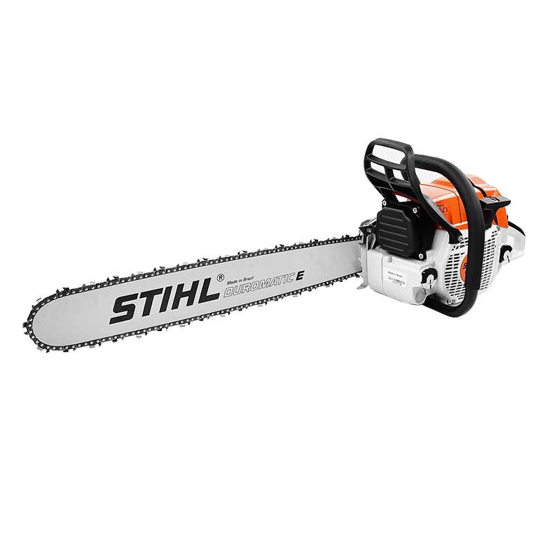 Motosierra de uso intensivo para corte forestal de árbol mediano y silvicultura, cuenta con sistema ElastoStart y válvula de descompresión, freno de cadena QuickStop de activación automática, mando confortable unificado multifuncional para el arranque, servicio y parada del equipo, sistema de filtro de larga duración con compensador y cierres de depósitos accionables sin herramienta.