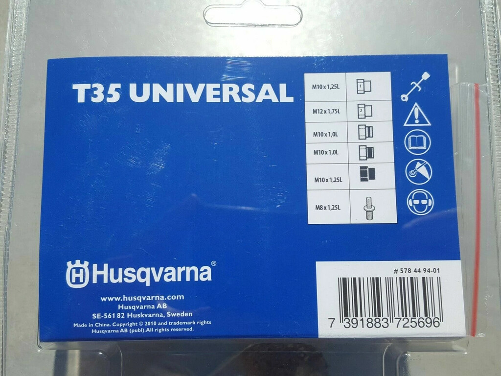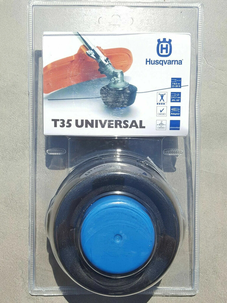 Diseñado exclusivamente por Husqvarna, el cabezal de corte T35 cuenta con un carrete fácil de recarga que se desmonta junto con la tapa, eliminando así la necesidad de voltear la máquina para recargar el hilo. El carrete tiene un diseño dividido que reduce los enredos y la soldadura del hilo, e incluye flechas que indican la dirección correcta de enrollado para evitar conjeturas. El carrete cuenta con dos ranuras para bloquear el hilo y evitar que se desenrolle al volver a colocar la tapa en el cabezal. El T35 admite hilo de corte de 0.065", 0.080", 0.095" o 0.105" y tiene una capacidad de 8.5 metros de hilo de calibre 0.095", uno de los mejores del sector, y viene prebobinado con hilo Titanium Force™ de 0.095".. Incluye 6 adaptadores tipo tuerca M10x1.25L, M12x1.75L, M10x1.0L, M10x1.0L, M10x1.25L y uno tipo tornillo birlo M8x1.25L,